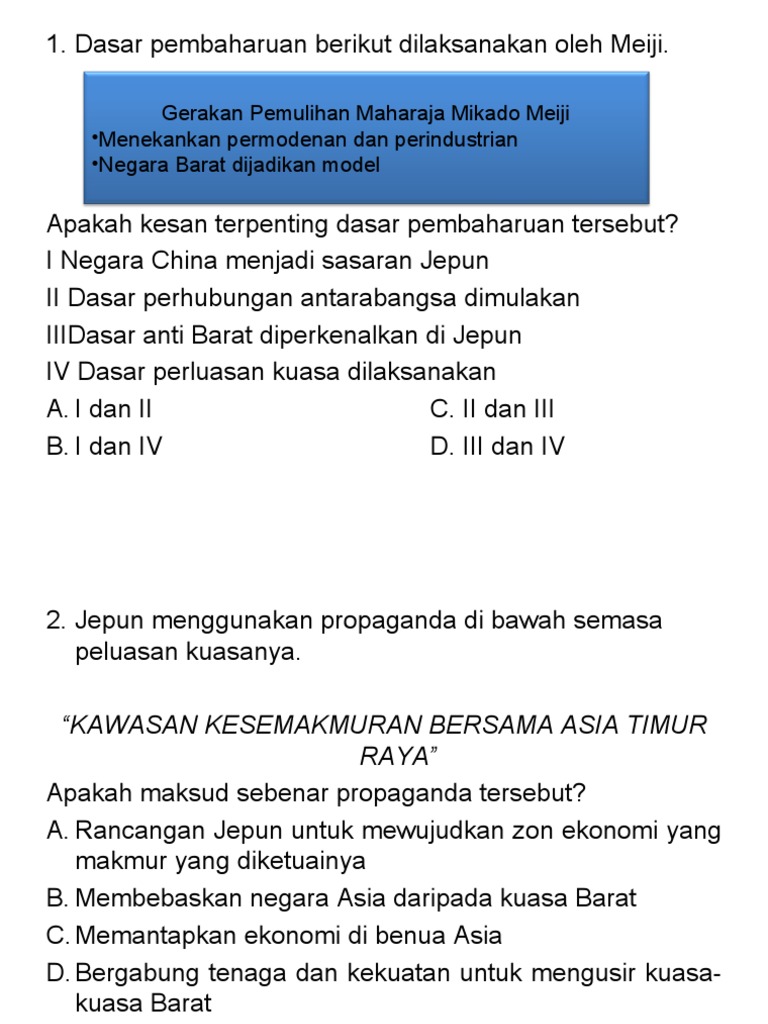 Sejarah Kertas 3 Tema Guru Sejarah Spm Shifu Sejarah Facebook from lookaside.fbsbx.com Menyatukan smeua kelompoketinik di tanah melayu c. Jul 16, 2019 · bab 5 1. Di singapura, 212 pertubuhan islam menyertai perhimpunan tersebut. Pembinaan negara asing tajuk 11: Sekolah rendah telah dilaksanakan di tahun 4. Memperkenalkan corak pemerintahan unitari b. Namun, walaupun pelbagai komen dan reaksi yang negatif dilemparkan terhadap penubuhan malayan union ini, kerajaan british tetap mahu menubuhkan kerajaan malayan union pada 31 mac 1948 dan sekaligus pemerintahan tentera british (bma) di semenanjung tanah melayu telah ditamatkan (mohd fuad mat jali, 1997). Mengapakah pihak british inign memperkenalkan malayan union pada tahun 1946?